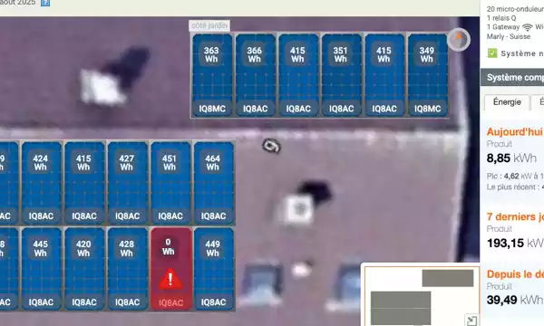 Avec Enphase, chaque panneau fonctionne de manière autonome grâce à son propre micro-onduleur. Si un module tombe en panne, seul celui-ci est concerné — les autres continuent à produire normalement.